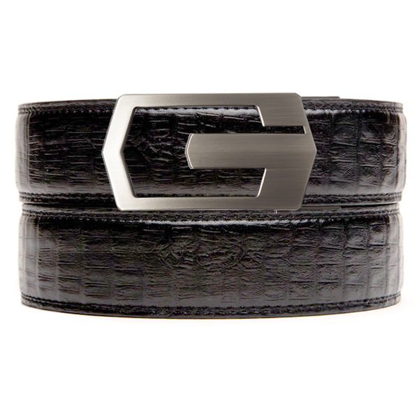 Wherever the journey of life takes you, this black ratchet belt will be a reliable companion. While this faux crocodile belt is quite versatile, we encourage you to use our Belt Builder tool to experiment with other combinations, too. Add a few Arnsworth straps and buckles to your collection today. Our belts are backed by a generous 2-year warranty and 30-day returns, so order this premium full-grain leather crocodile belt with 100% confidence. Add the bold style of a crocodile belt to your wardrobe.