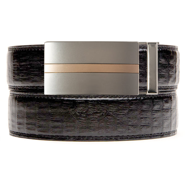 Our Black Faux Crocodile Belt Strap adds eye catching texture.