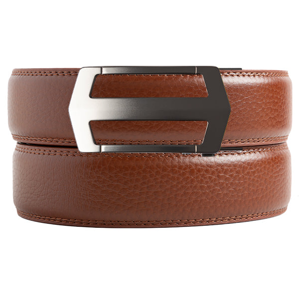 The Devon Cinnamon Textured Belt is a streamlined, modern belt that will look good with any outfit.