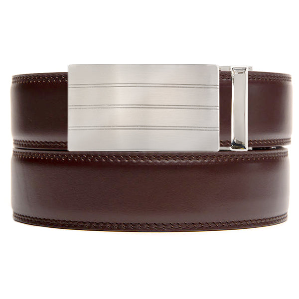 Our Dorset Buckle is silver with three engraved horizontal lines.