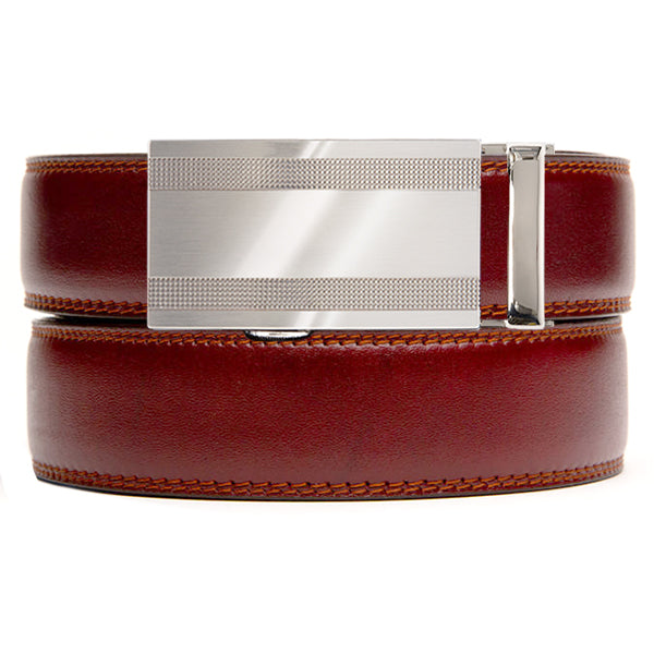Our Coffee Belt is a holeless leather strap of brown/red and is ideal for casual looks.