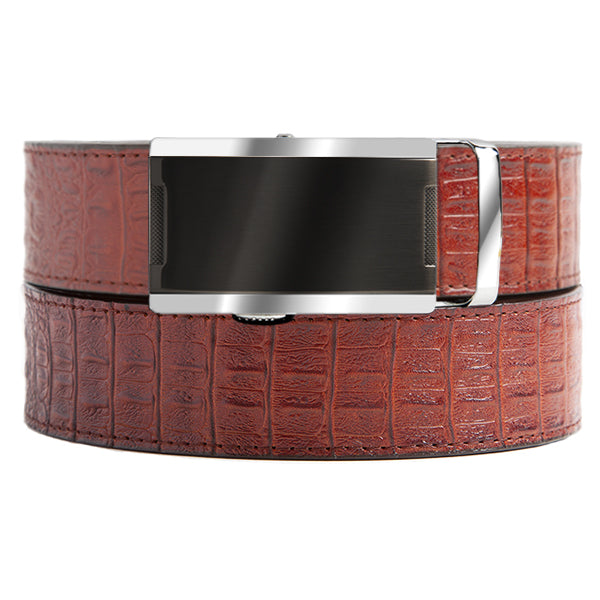 The Norfolk Faux Cayenne Crocodile Belt updates your wardrobe with polish and color.
