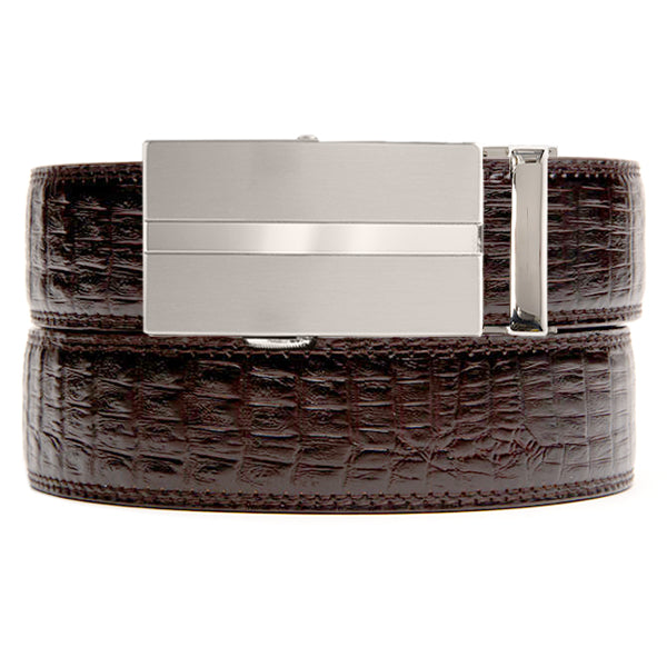 Texture and shine combine to make the Nottingham Faux Brown Crocodile Belt.