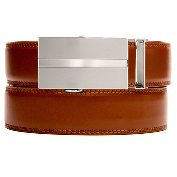 Our Nottingham Buckle is a stylish brushed silver with a shiny silver horizontal stripe.