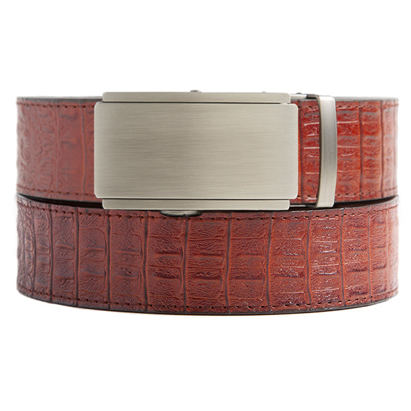 The Faux Cayenne Crocodile Belt Strap has a deep red/brown color with a rich texture that will become your favorite!