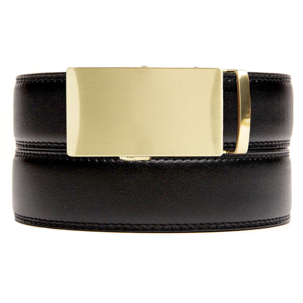 The Somerset Buckle is a polished gold finish that pairs with all of our belt straps.