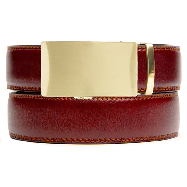 Our Coffee Belt Strap is a rich red/brown full grain leather that can dress up any outfit.