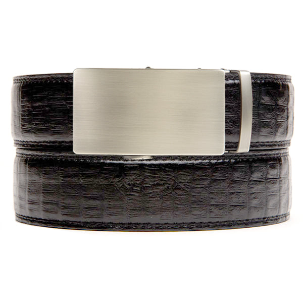 Our Faux Crocodile Belt Black is a gorgeous texture in a deep black color.