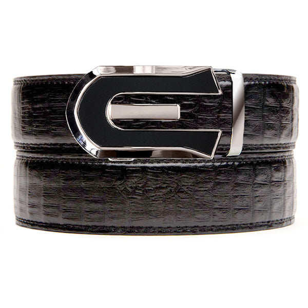 Our Black Faux Crocodile Belt Strap is a richly textured full grain leather in a deep black.