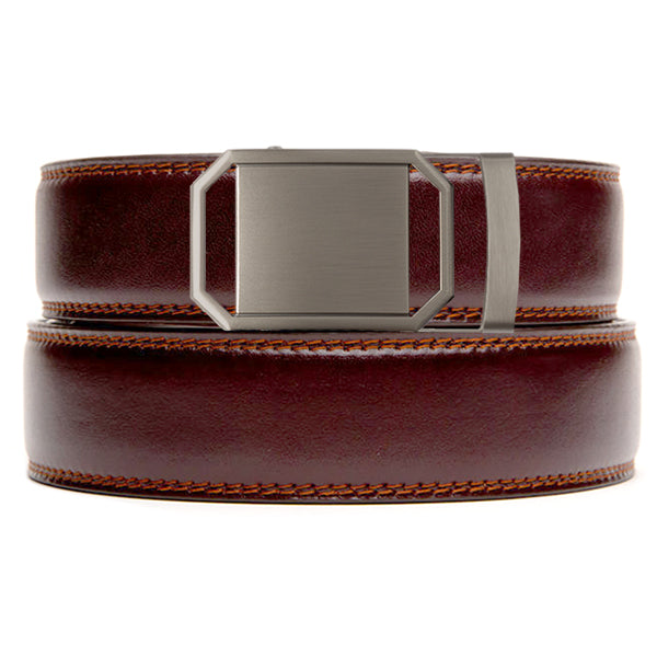 The Kent Buckle is an octagon shape with side cut outs in a brushed gunmetal finish.