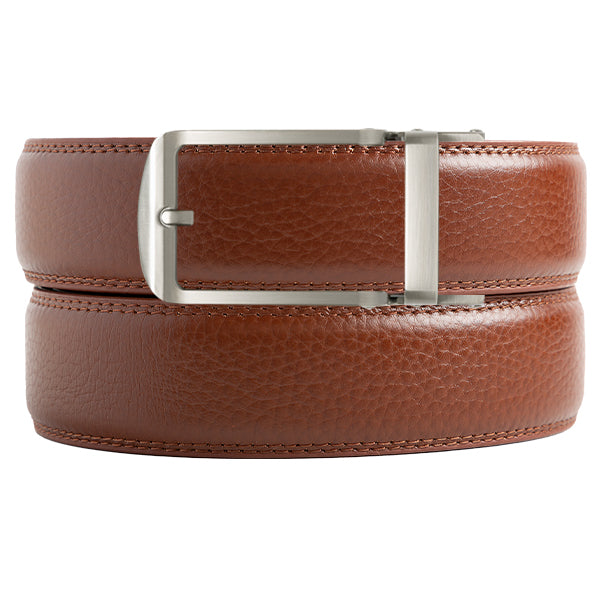 Our Cinnamon Texture Belt Strap has a noticeable but fine texture in a warm brown with no holes.