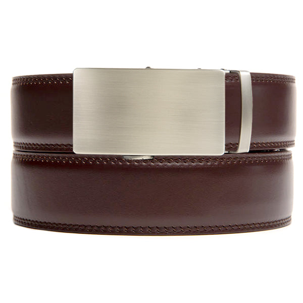 Our Espresso Belt Strap is a full grain leather with a dark brown color.